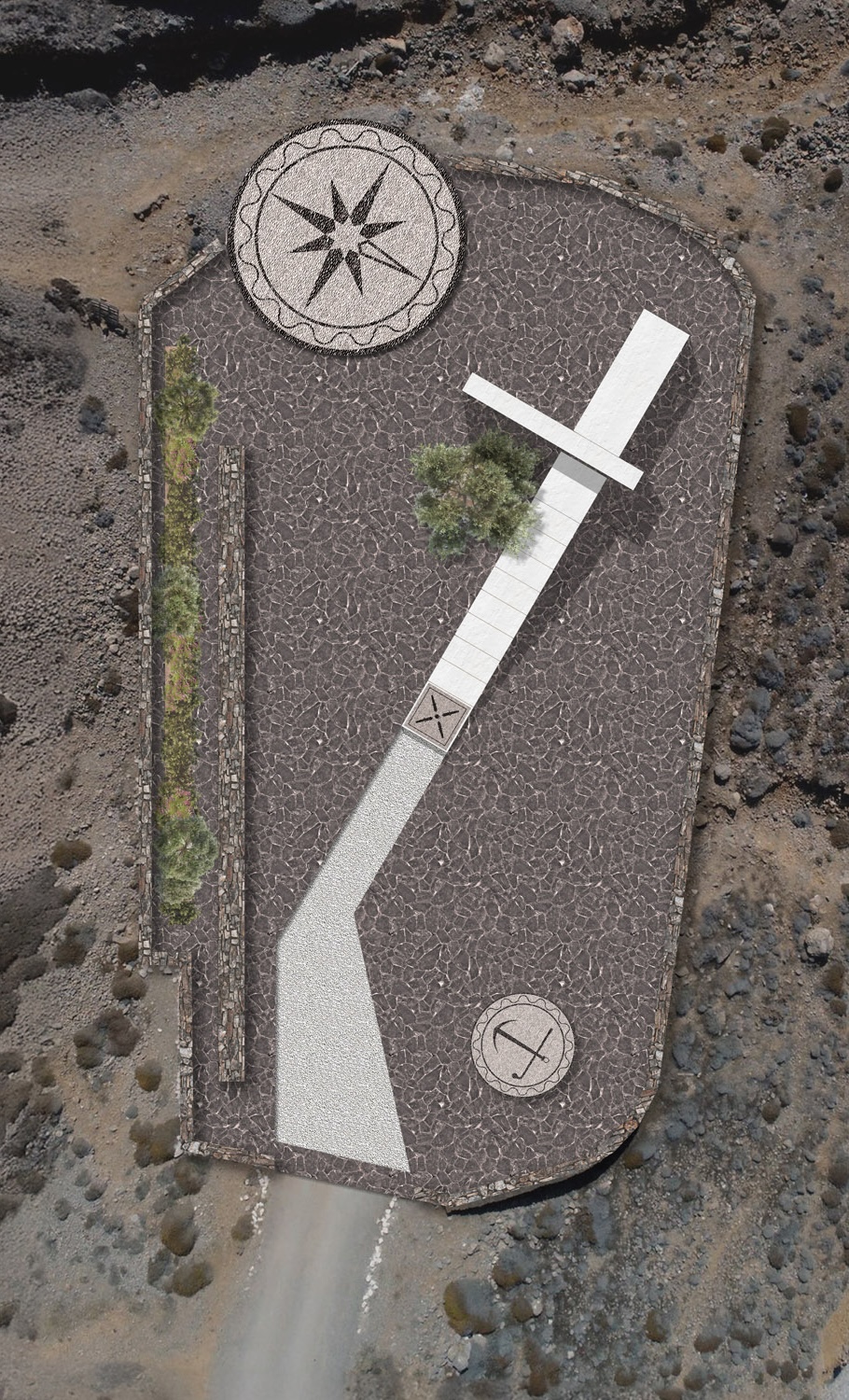 Η σημειολογική αρχιτεκτονική, ως μέσο αφήγησης, κάθαρσης και αναστοχασμού, στήνει ένα χωρικό μύθο που οδηγεί τον επισκέπτη σε μια μυστηριακή πορεία προς τη μεταμόρφωση και την ενατένιση του αύριο - με πυξίδα το χτες.